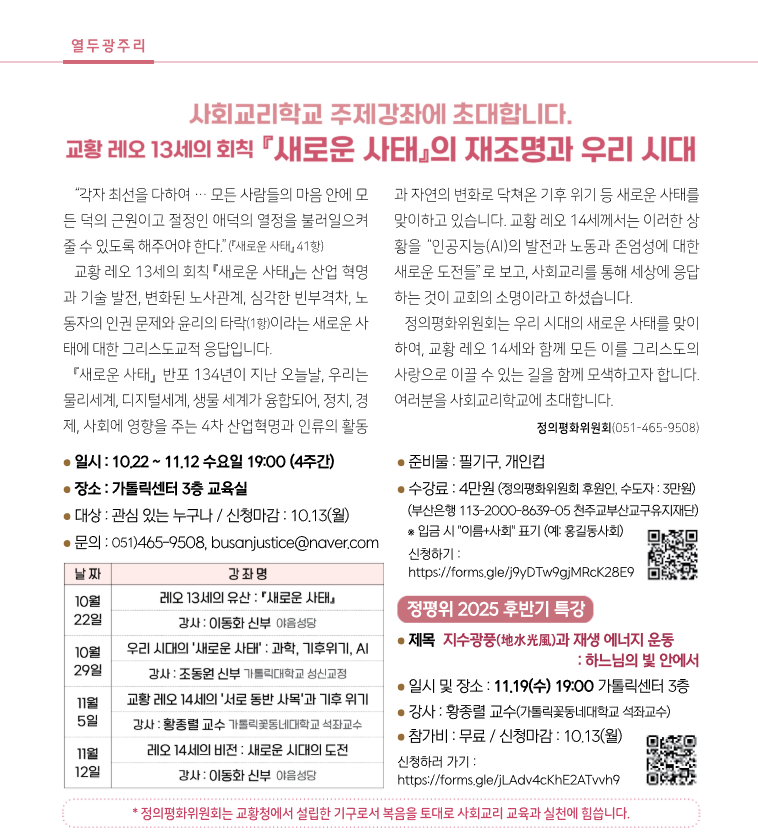 <2025사회교리학교 주제강좌> 참가신청 받습니다.