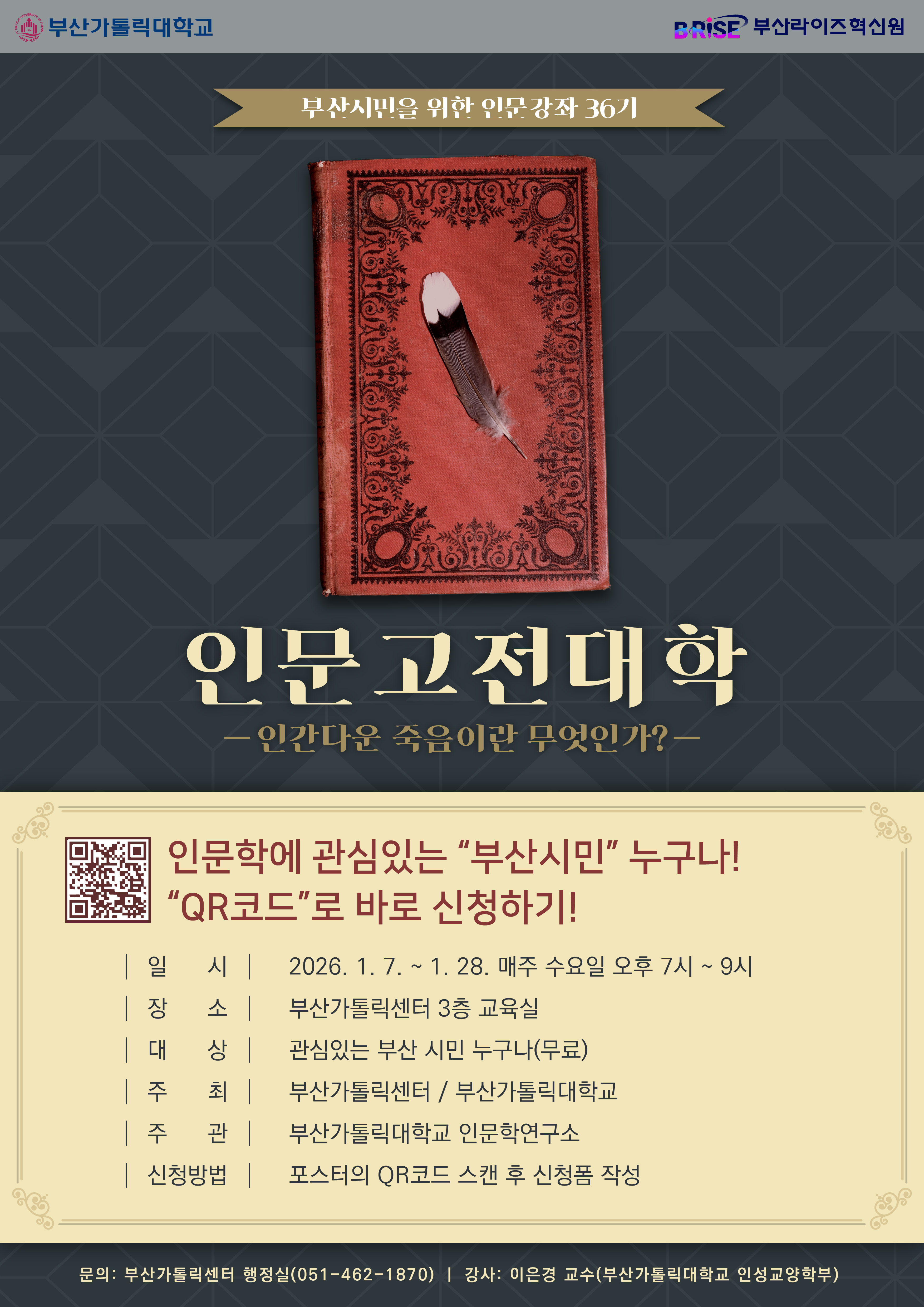 제36기 인문고전대학 개강 안내 : -인간다운 죽음이란 무엇인가?-