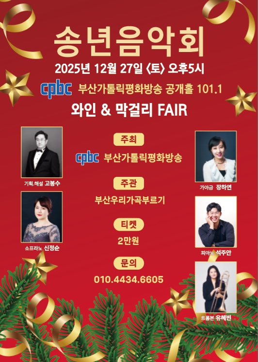 [공연] 12. 27(토) 17시 부산 우리 가곡 부르기의 2025 송년음악회 '와인, 막걸리 FAIR'